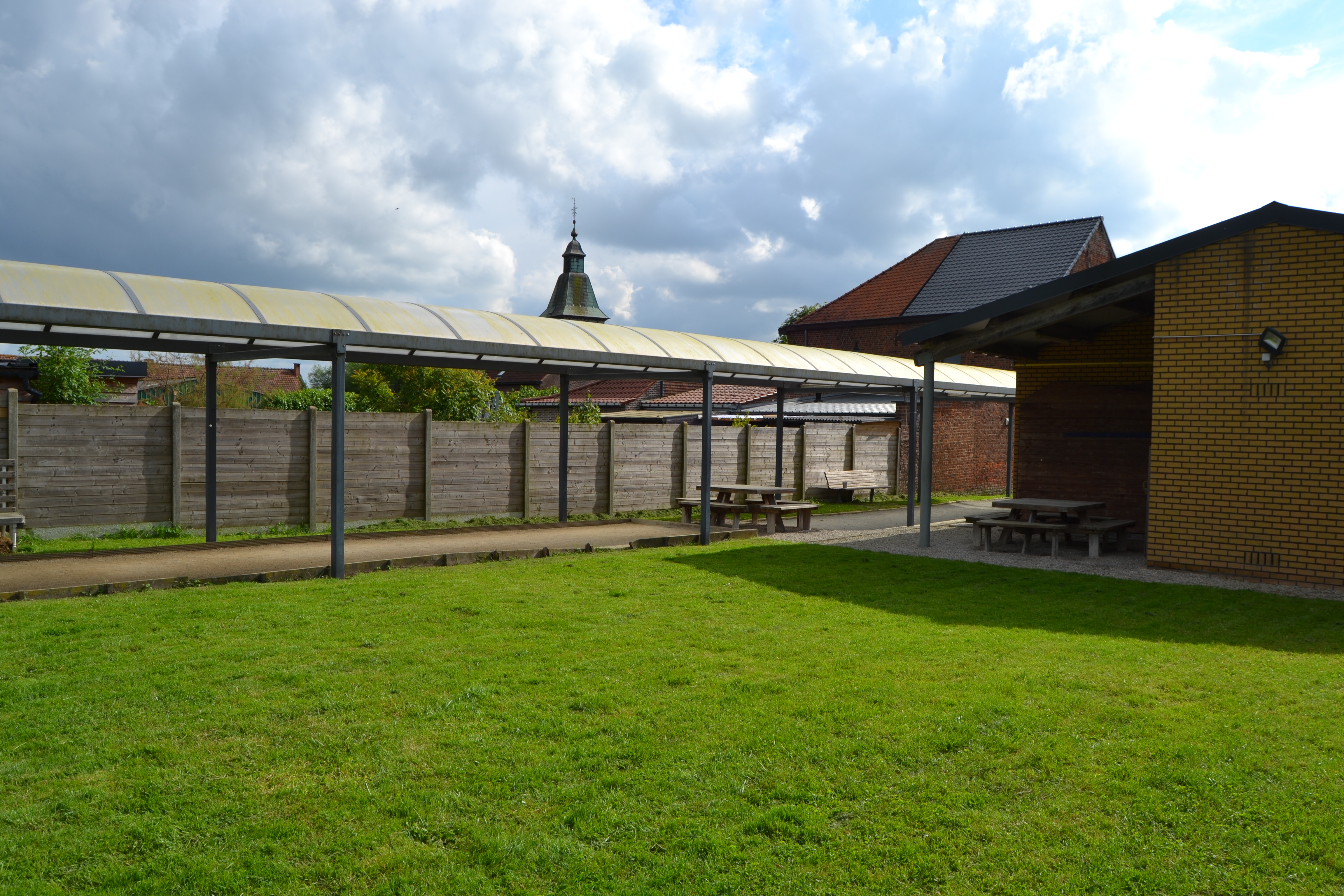 Een grote troef van ’t Zaaltje is de buitenruimte met groot grasveld. Ideaal voor een tuinfeest of communie. Buiten kan je ook de petanquevelden terugvinden en de twee picknickbanken om gezellig buiten te zitten.