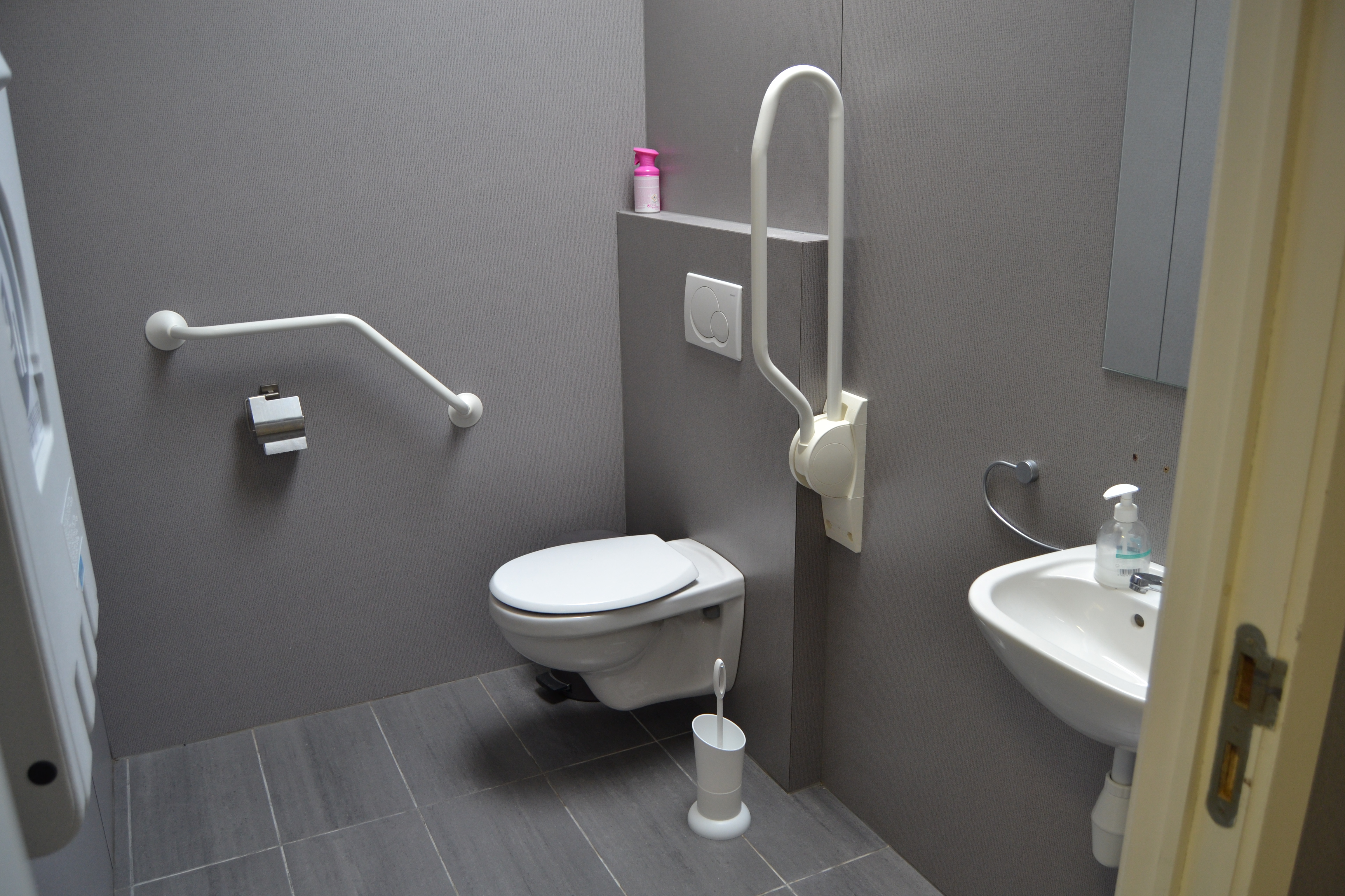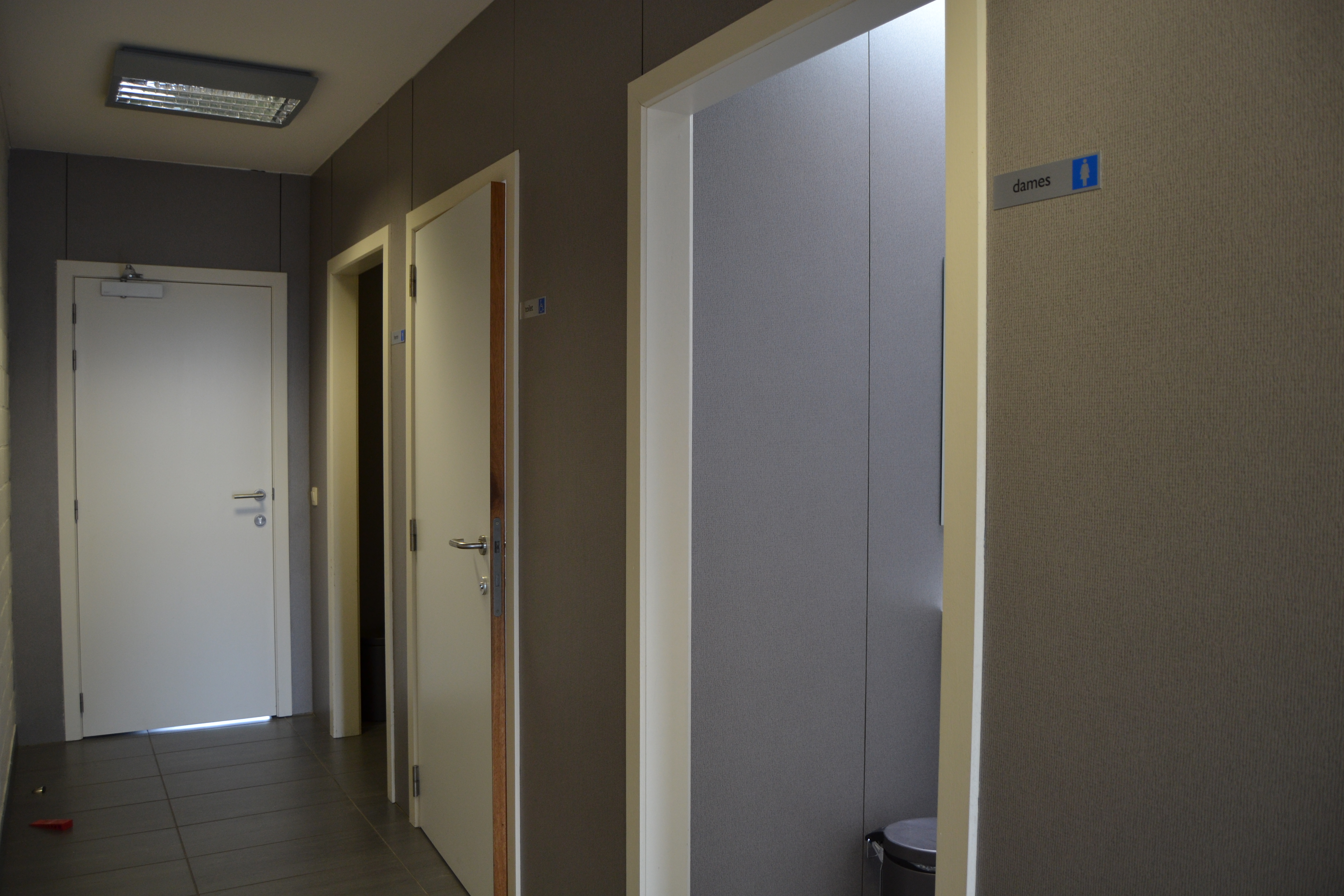 Voorbij de inkomhal van ’t Zaaltje kan je een uitgebreid sanitair terugvinden. De ruimte is voorzien van twee vrouwenwc’s, één mindervalidetoilet, een verzorgingskussen en twee urinoirs.